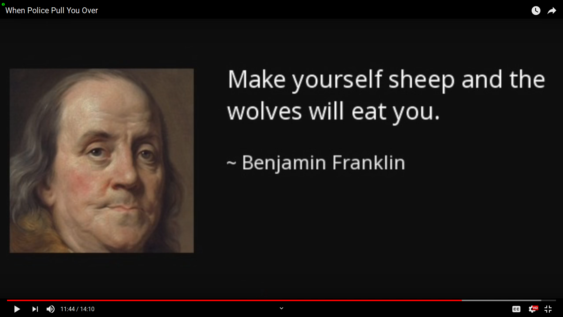 Длинная телега есть от другого лоера, что-то на полчаса, где он дает тот же эдвайс по поводу ЛЮБОГО столкновения с американской полицией. Свидетель, обвиняемый, мимо проходил, время на часах спросили, неважно.